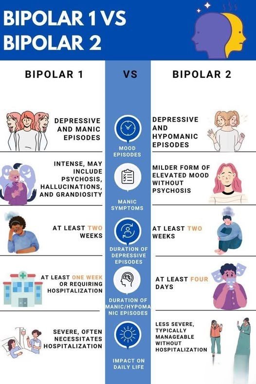 | Hospitalization | Yes, particularly during manic episodes | Possibly during a period of depression |